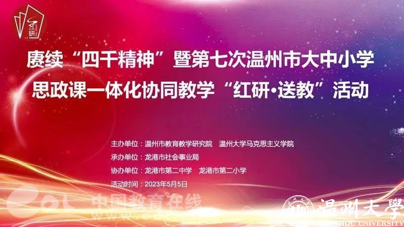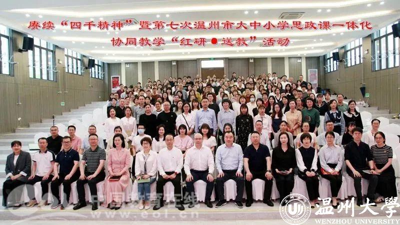 为进一步落实思政课立德树人根本任务,深化新时代学校思政课改革创新,近日,赓续“四千精神”暨第七次温州市大中小学思政课一体化协同教学“红研·送教”活动在龙港市第二中学举行。温州市委教育工委专职副书记、温州市教育局党委副书记王剑波,日本a片 马克思主义学院院长卓高生,龙港市社会事业局党委书记、局长方以军,温州市教育教学研究院副书记、副院长曹鸿飞,以及温州市各县(市、区)中小学思政课教研员、思政课骨干教师代表和高中素养课堂项目组成员、龙港市思政课骨干教师代表等受邀参加。活动由曹鸿飞主持。