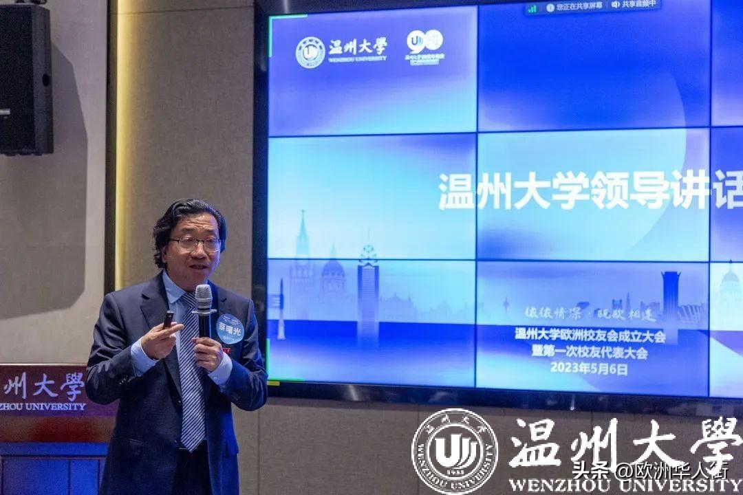 蔡曙光代表学校向欧洲校友会的成立、向当选的第一届理事会成员和会长孙运之表示热烈的祝贺。蔡曙光介绍了近年来学校的建设发展情况。他表示,学校经过90年的沉淀和发展,枝叶繁茂,校友遍布海内外,学校的高质量发展离不开广大海内外校友的大力支持。母校荣则校友荣,校友强则母校强,母校与校友共生共荣,希望欧洲校友会承盛世风华,担时代之责,紧密联系广大欧洲校友,架起校友与校友之间、校友与母校之间沟通、交流、合作的桥梁。