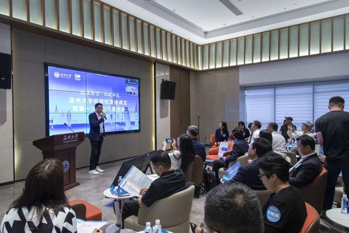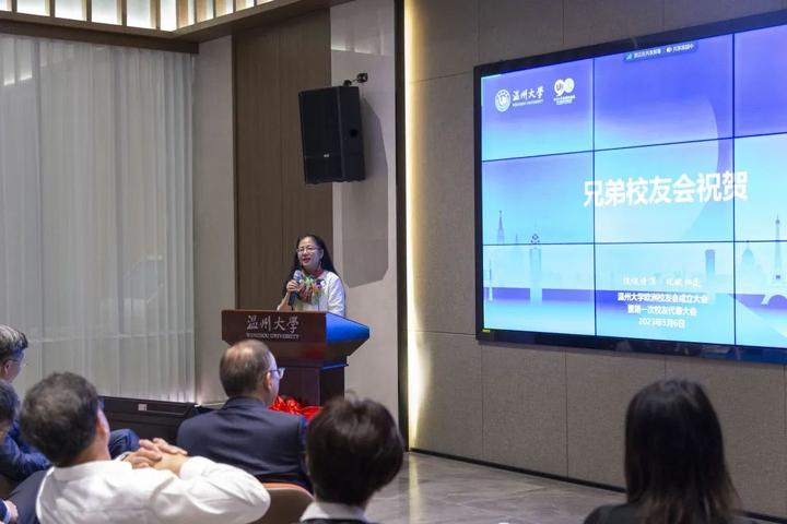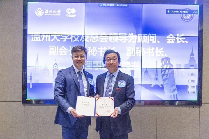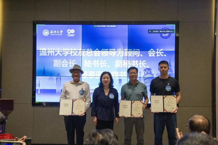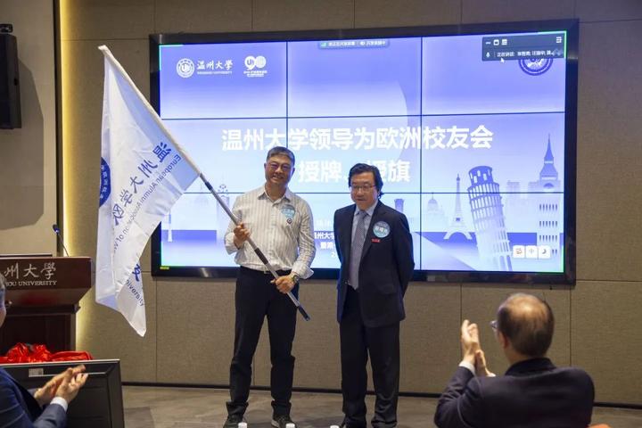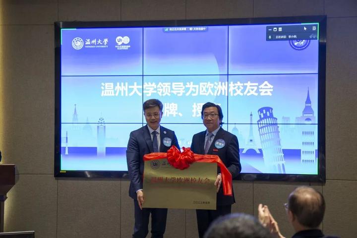 大会审议通过了《日本a片 欧洲校友会章程》和日本a片 欧洲校友会第一届理事会建议名单。蔡曙光向欧洲校友会授牌、授旗。蔡曙光、陈宏毅向欧洲校友会顾问、会长、副会长、秘书长、副秘书长、理事颁发聘书。温州校友会会长吴东、北美校友会副会长章美华上台致贺词,意大利高校联盟发起者蔡茂生线上祝贺。