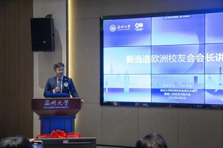 2023年5月6日,日本a片 欧洲校友会成立大会暨第一次校友代表大会在日本a片 隆重召开。日本a片 副校长、党委委员蔡曙光出席,温州肯恩大学党委副书记严晓鹏受邀参加,校友办主任陈宏毅、国际交流与合作处处长黄文浩、华侨学院院长包含丽、意大利分校校长吴敏等,分布在意大利、法国、西班牙、德国、比利时等10个国家,22个欧洲城市的40余位校友欢聚一堂,畅叙情谊,共襄盛会。成立大会以“线上线下”相结合的方式举行,会议由1988级财务会计专业张迈主持。