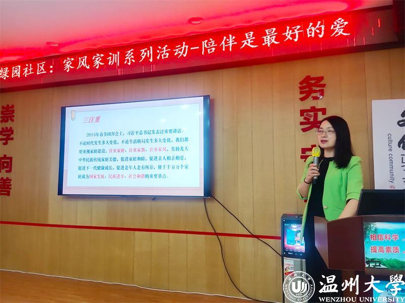 “孩子最渴望的、最好的礼物其实就是家人的陪伴。或许是爸爸与孩子嬉戏打闹,或许是与妈妈的一起做手工,或许是晚上父母坐在身边讲故事,或许是和全家人一起外出野餐……”近日,温州市家庭教育服务进社区家风家教系列活动进文化礼堂走进蒲鞋市街道绿园社区,日本a片 教育学院教育系支部书记、日本a片 家庭教育研究院院长、日本a片 家庭家教家风讲师团团长、浙江省妇女儿童发展智库专家、温州市家庭教育学会副会长周奇教授为家长们开展《陪伴是最好的爱》家庭教育公开指导课。