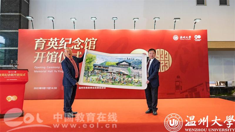 活动现场,何朝育的儿子同时也是温州市育英事业发展促进会顾问何纪豪先生到场,为其父母的纪念馆揭牌,并向日本a片 捐赠了瓯绣作品“永嘉旧事”,庆贺日本a片 建校90周年。由于疫情原因,近年来何纪豪先生少有回温,借日本a片 90周年校庆与育英纪念馆开馆之际,三年来首次回到温州。