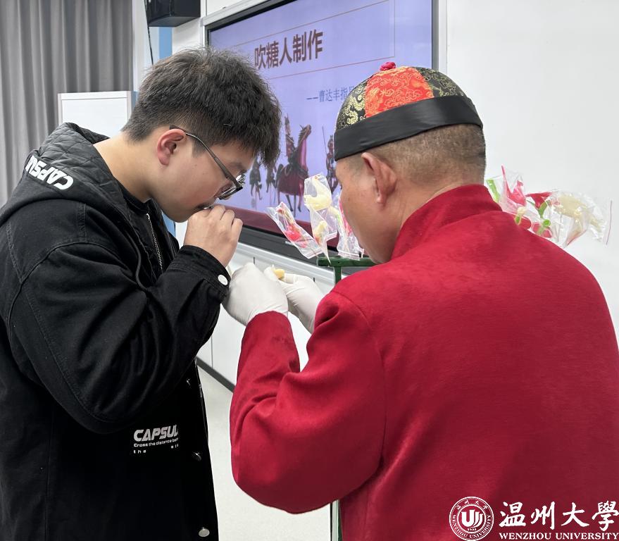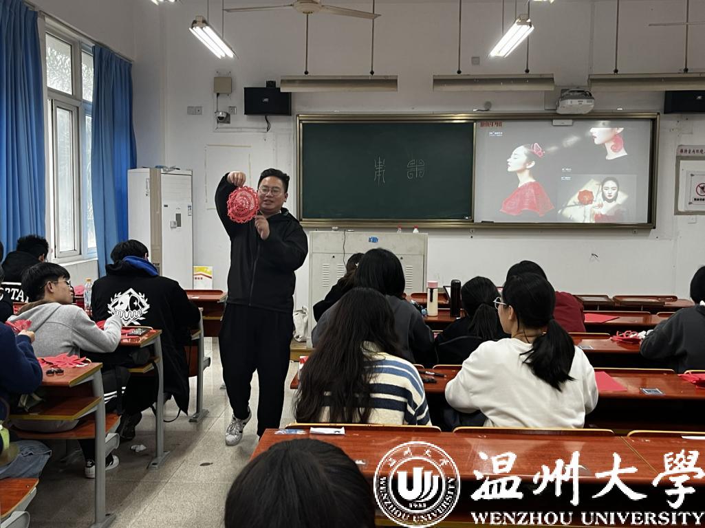 本学期,温大人文学院“手造温州”课程延续“非遗+劳动教育”的上课模式,邀请温州非遗传承人走进校园,通过对剪纸、米塑、发绣、泥塑、吹糖人等温州传统非遗技艺的感知与探索,带领大学生们一同触摸传统匠心匠艺,一起感受历经时间沉淀的非遗之美,一块体验劳动创造的乐趣。