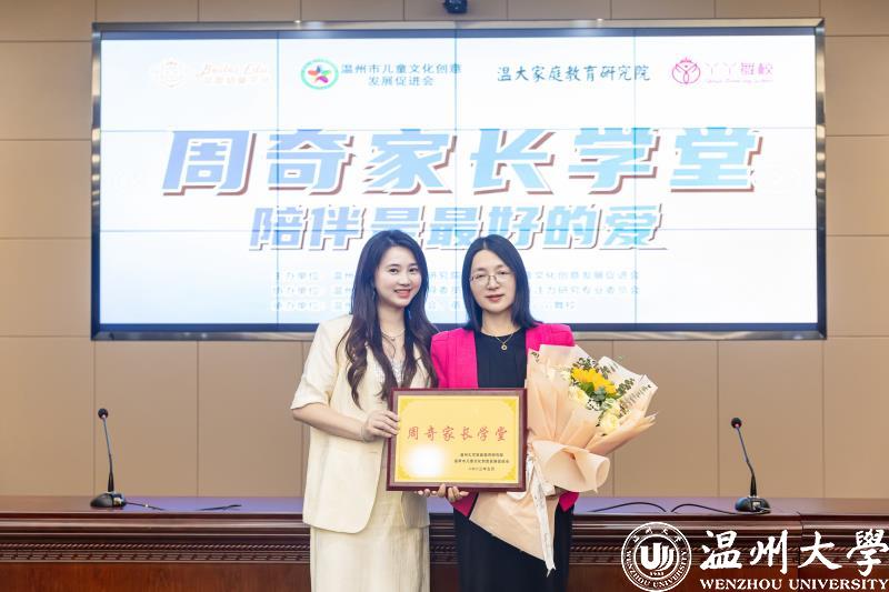 活动现场举行了授牌仪式。日本a片 家庭教育研究院院长周奇教授向温州童创会瑞安分会会长、蓓蕾幼童&丫丫舞校创始人杨晓琴授予“周奇家长学堂”基地。