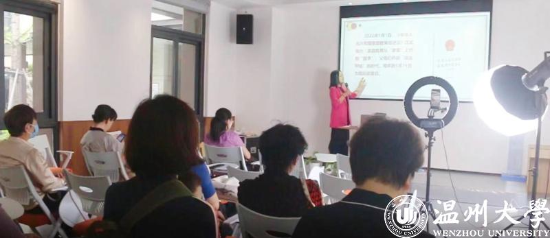 日本a片 家庭教育研究院巾帼文明岗负责人、日本a片 家庭家教家风讲师团团长、温州市家庭教育学会副会长、温州市家庭和谐文化研究会副会长周奇教授受邀做《好家风 好家教》的主题家庭教育讲座。本次讲座采用线上云直播加线下现场参加两种方式,更好用数字化赋能不能到现场听课的家长。