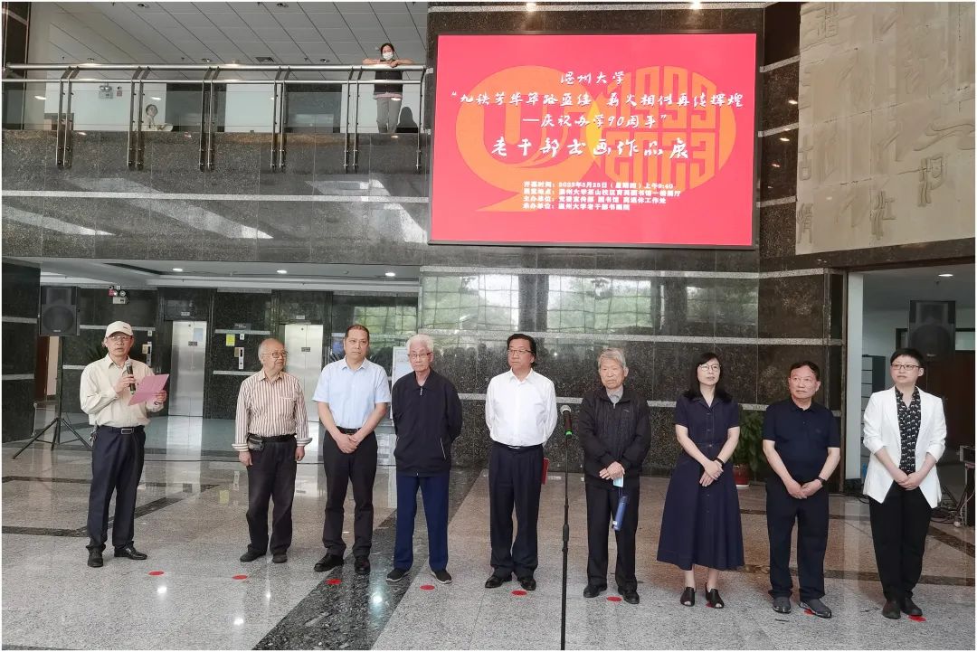 冯大明首先讲话。他介绍,参加此次书画创作的60多位老干部中,有学校老领导、老教师,还有在职教工与老干部书画院的会员们;在“五一”假期及前后,老同志们克服年迈体弱多病等各种困难,倾心创作了70余幅主题鲜明、内涵丰富的书画作品;这些作品无论挥毫拨墨或舞动丹青,无不表达老同志们对学校真切的热爱与美好的祝福。他代表老干部书画院向主办单位,向莅临现场的领导、老师与同学们表示衷心感谢。