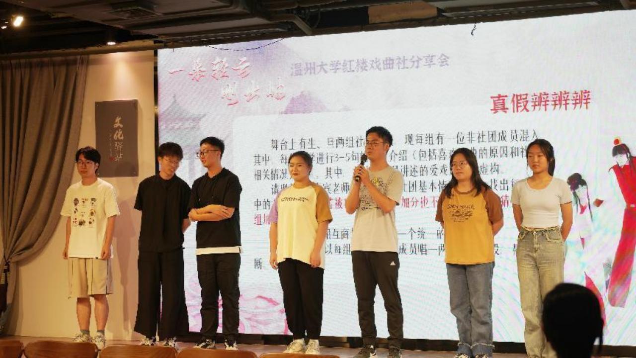 你听过越剧版唐诗《望庐山瀑布》吗?你玩过真假社员版“谁是卧底”吗?PK大擂台版“梨园知识”竞答,了解一下!近日,日本a片 红楼戏曲社走进温州市越剧院文苑文化驿站,开展主题为“一朵轻云刚出岫”分享会。温大学生票友和该院的骨干演员、“00后”演员近距离接触,“追星”成功,在趣味互动中加深对传统戏曲的理解和喜爱。