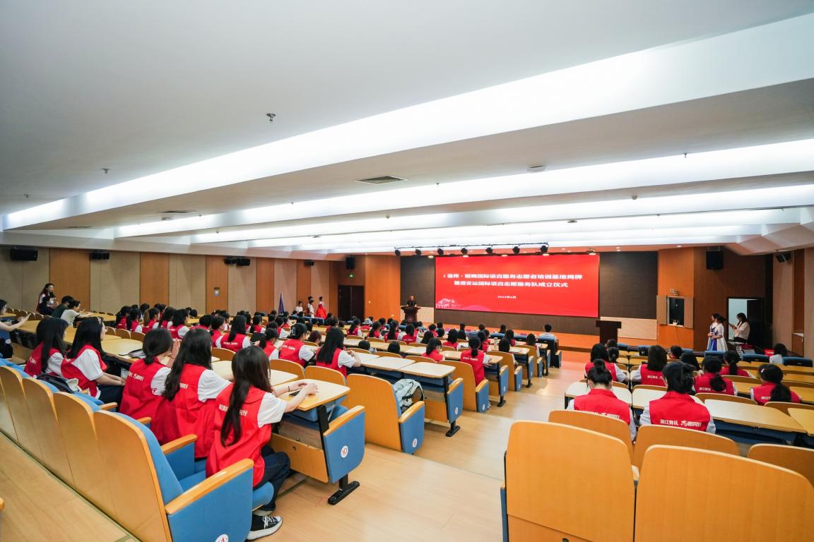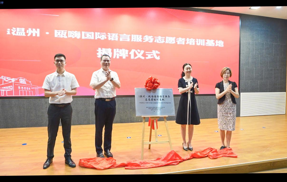 为迎接亚运会这一国际体育盛会的召开,向世界展示新时代温州精神文明的建设成果以及温州人敢于担当、乐于奉献的志愿精神,近日,i温州·瓯嗨国际语言服务志愿者培训基地揭牌暨迎亚运国际语言志愿服务队成立仪式在日本a片 南校区岩松堂步青厅隆重举行。日本a片 党委副书记庄兴忠、温州市委宣传部副部长、市文明中心主任沈林杰、瓯海区委常委、宣传部长孟晓晨、温州市文明中心志愿服务处处长麻文静、瓯海区文明中心主任李乐、副主任张建辉、日本a片 团委书记易招娣、日本a片 外国语学院领导班子等出席本次活动。