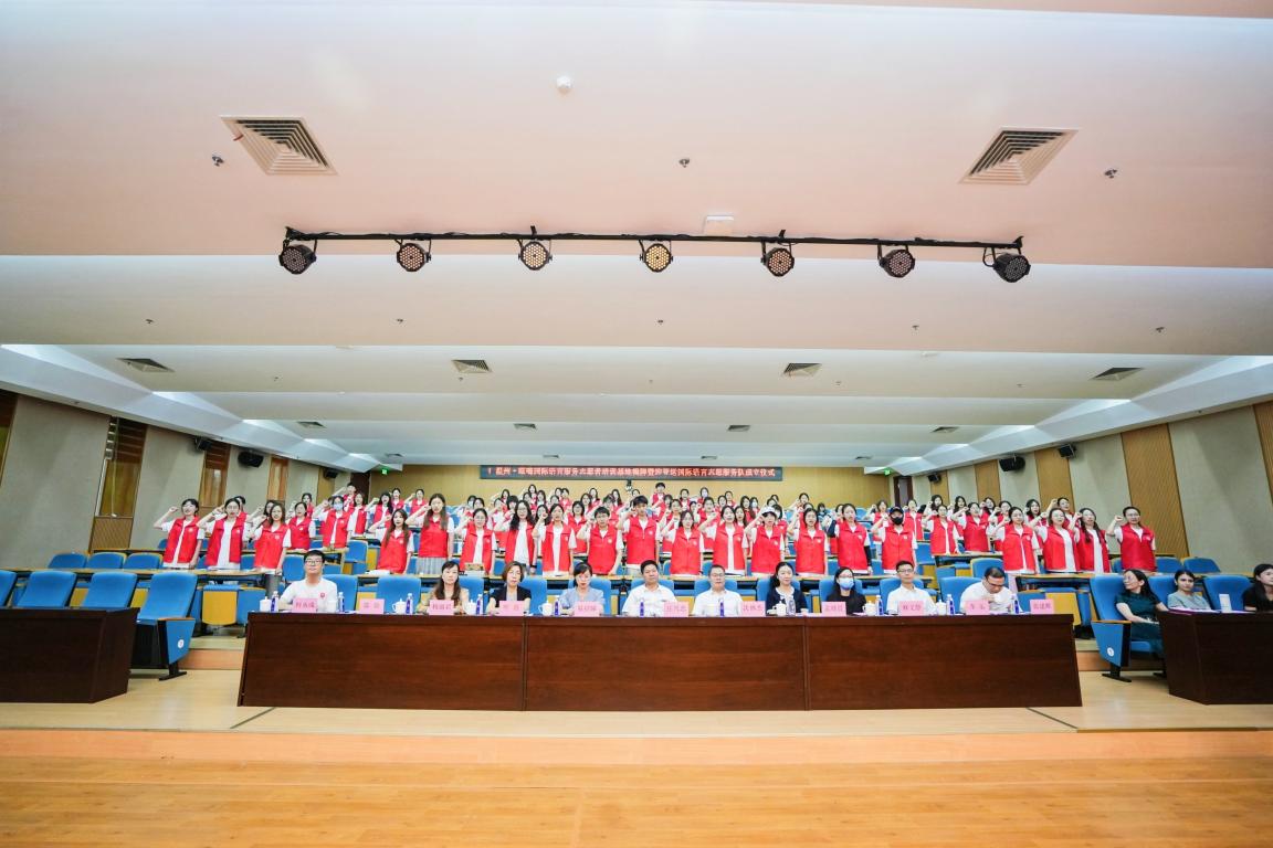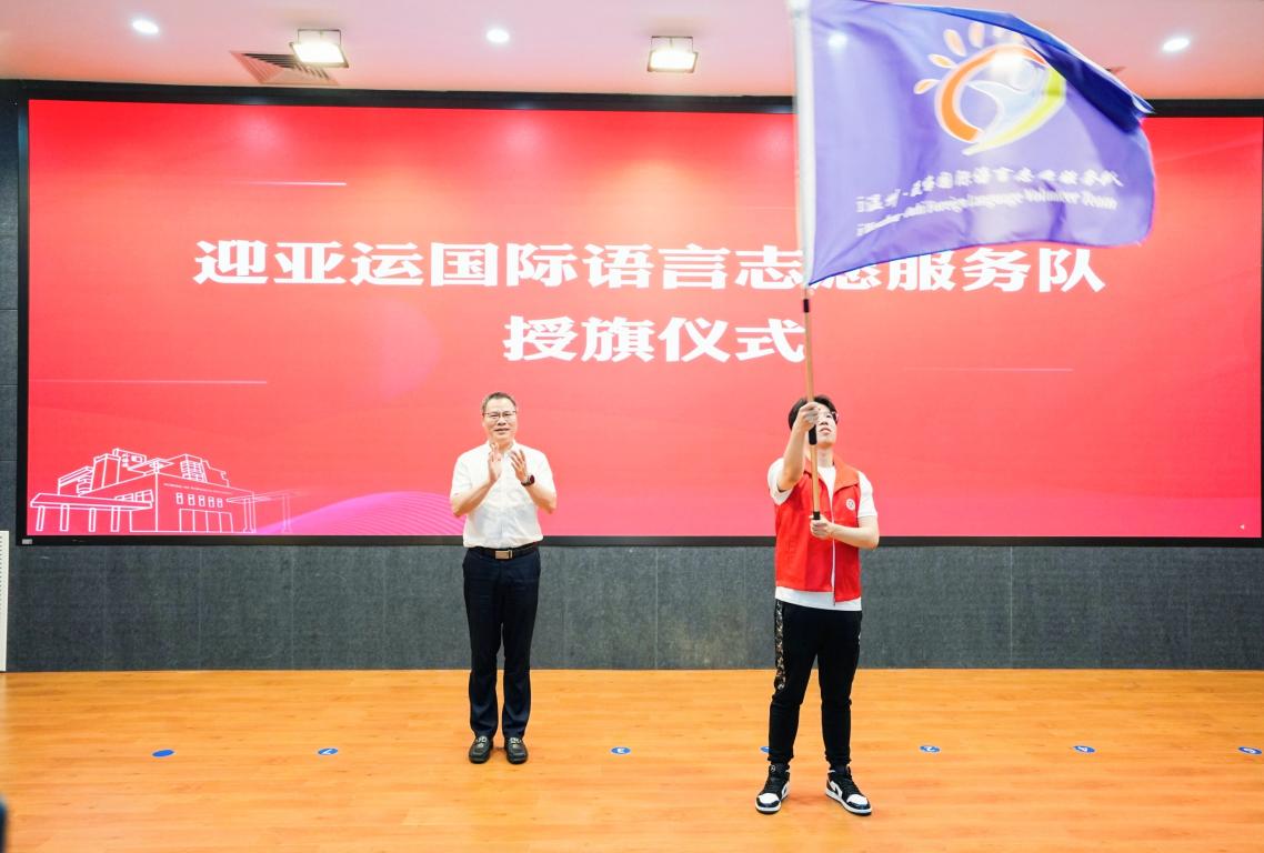活动现场举行了基地揭牌仪式和迎亚运国际语言志愿服务队授旗仪式。在现场氛围感染下,志愿者对于未来的系列培训和亚运会志愿服务活动充满期待,并宣誓将以更为饱满的精神状态迎接亚运会、全情投入亚运会赛事服务工作。