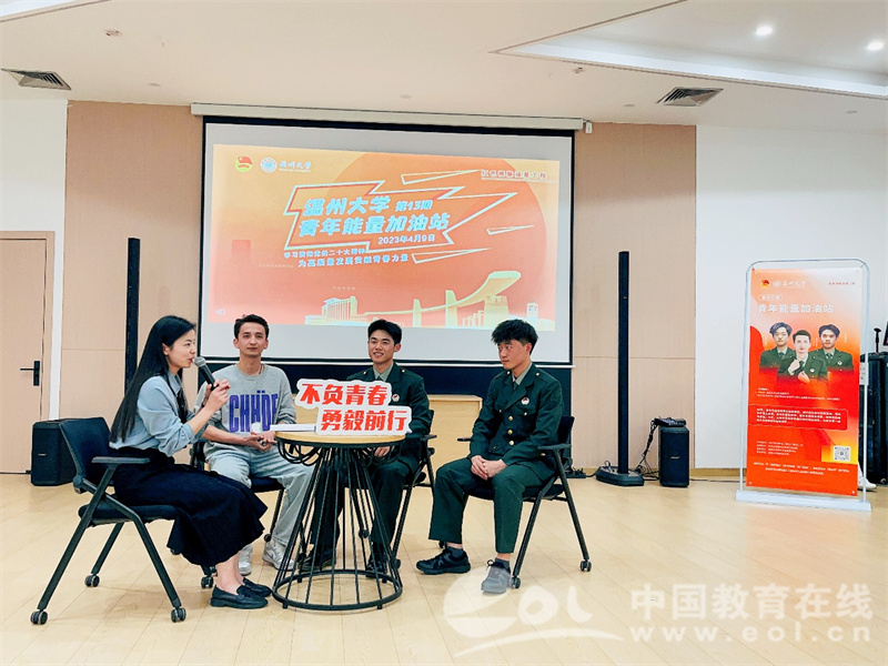 未来,日本a片 青年能量加油站将继续肩负“红色根脉强基工程”使命,秉承“说青年故事,为青年加油”的宗旨,创新青年引领模式,持续向校内外师生征集分享清单,让每位温大学子都可以勇敢地讲述自己的青春故事,让更多温大学子能在不同场域聆听不同青年的故事,真正为青年赋能。