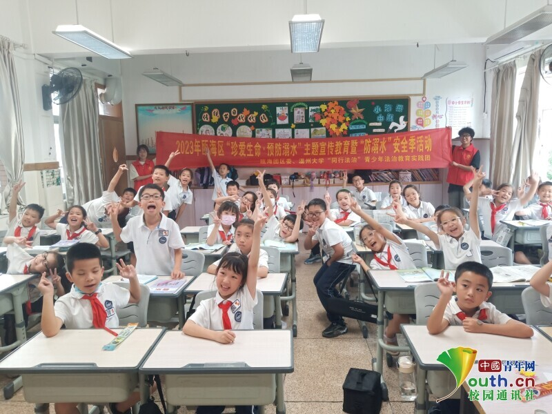 图为实践团在瓯海实验小学前汇校区开展放法伴节水预防溺水普法活动。中国青年网通讯员章志铖供图