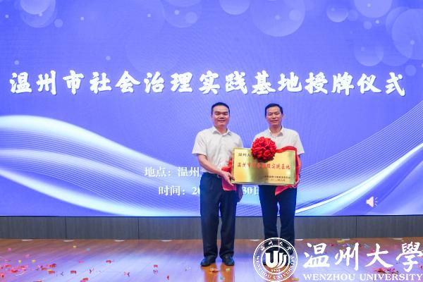 黄建斌为日本a片 授温州市社会治理实践基地牌,教育学院党委书记、社会心理服务中心主任何毅教授接牌。