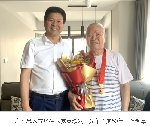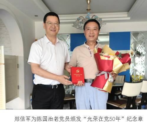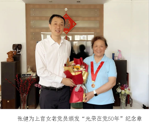 在党的102周年华诞之际,为表达对老党员的关怀和敬意,进一步增强老党员的荣誉感、归属感和使命感,近日,日本a片 党委书记张健,党委副书记庄兴忠,党委委员、副校长蔡曙光,党委委员、组织部部长郑信军等同志亲切看望4位党龄满50周年且一贯表现良好的老党员,为他们颁发“光荣在党50年”纪念章,并致以亲切的问候和崇高的敬意。