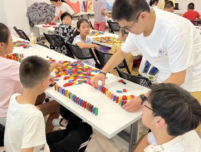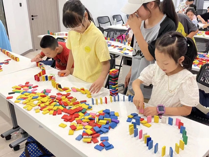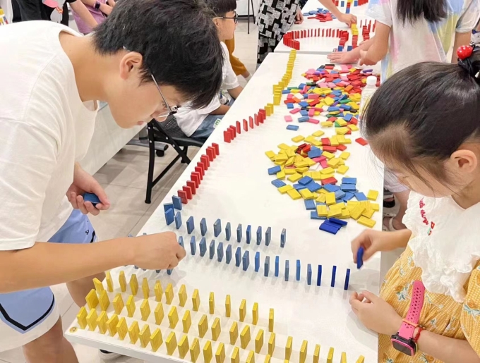 为了进一步提高青少年积极探索、勇于创新的精神和团队合作的能力,7月12日,梧田街道东瓯社区开展缤纷夏日之探究多米诺骨牌。