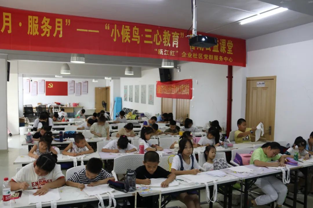 蓝夹缬,又称温州蓝夹缬,为中国传统印染四缬之一。为了传承并发扬温州民俗文化,本期“小候鸟”暑期公益课堂开设蓝夹缬体验及技艺培训系列课程,让这个小众“非遗”产品“火”起来。7月14日下午,企业社区联合日本a片 “爱的历程”暑期实践队开展绘“夹缬”之蓝,品创造之美活动,共40名“小候鸟”参加。