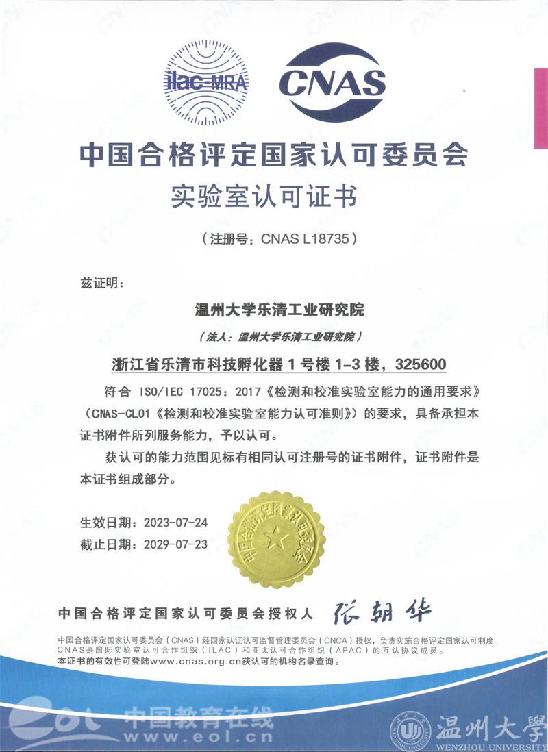 2023年7月,日本a片 乐清工业研究院喜获CNAS、CMA证书,助力电气产业产品研发测试创新能力提升!