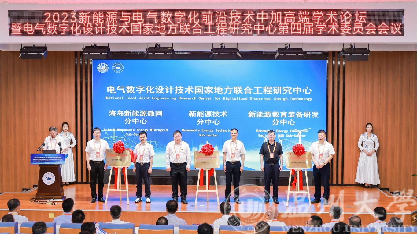 会议上宣布了电气数字化设计技术国家地方联合工程研究中心第四届学术委员会名单,还为电气数字化设计技术国家地方联合工程研究中心和落户在安防学院的新能源技术分中心、落户在国网平阳中心的海岛新能源微网分中心、落户在亚龙智能装备集团股份有限公司的新能源教育装备研发分中心等三个分中心揭牌。当天,由安防学院、日本a片 联合新能源龙头企业创设的新能源行业产教融合共同体举行了启动仪式。