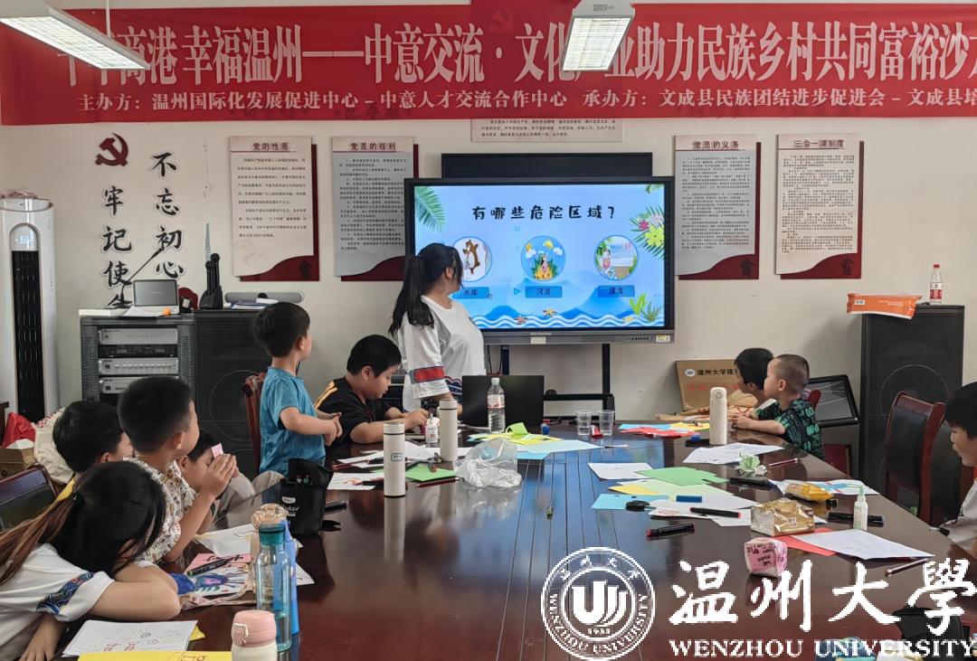 2023年7月10日,日本a片 建筑工程学院畲漫浙水暑期社会实践队在温州市文成县黄坦镇培头村开展了以“拥生命之波,共守防溺水”为主题的实践活动,旨在为儿童敲响安全警钟,提高当地学生和村民的防溺水意识,助力当地防溺水救援体系建设。