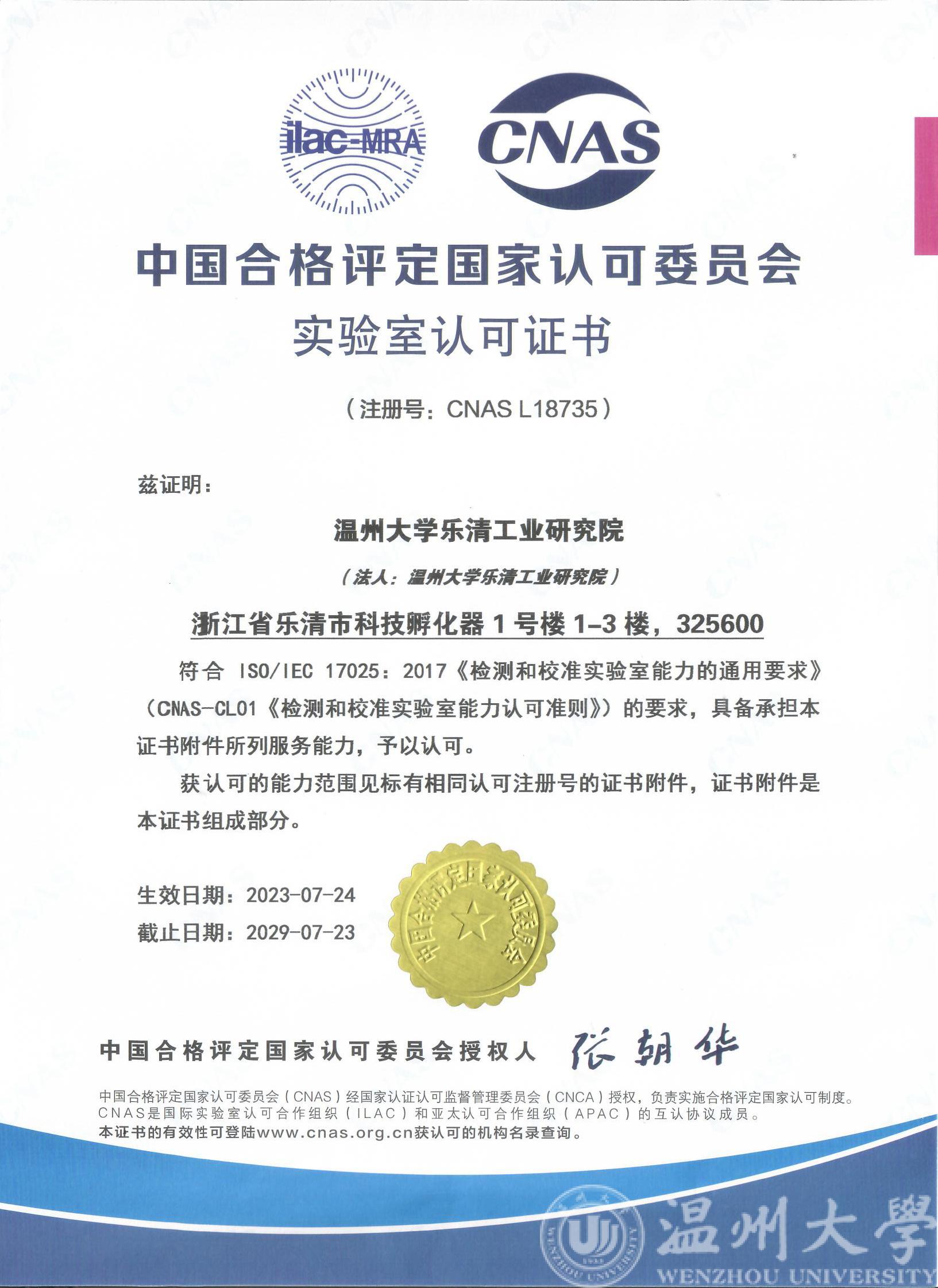 2023年7月,日本a片 乐清工业研究院喜获CNAS、CMA证书,助力电气产业产品研发测试创新能力提升!