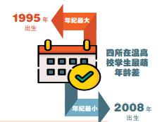 4所高校的新生主力基本都出生于2005年和2004年,其中以“05”后(以下特指2005年出生学生)居多。温医大有“05”后2432人,2004年出生的有1366人,最“年轻”的萌新出生于2008年,2007年出生的有5人,2006年有52人,最“年长”的出生于1997年,有1人。温大“05”后有2538人,2004年出生的有1595人,年龄最大的同学出生于1995年,最小的出生于2007年。