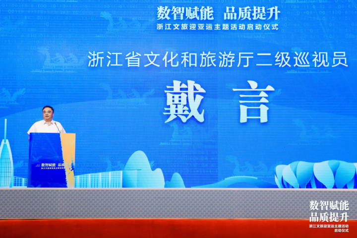 会上,浙江省文化和旅游厅二级巡视员戴言发表动员讲话。“杭州亚运会既是对浙江各地文旅接待能力的一次考验,也是促进浙江文旅发展的一种机遇。我们要以一流的精神面貌、高水平的服务做好亚运会接待工作,将服务亚运作为文旅行业数字化提升、品质化提档的检验,全面推进文化和旅游深度融合发展。”