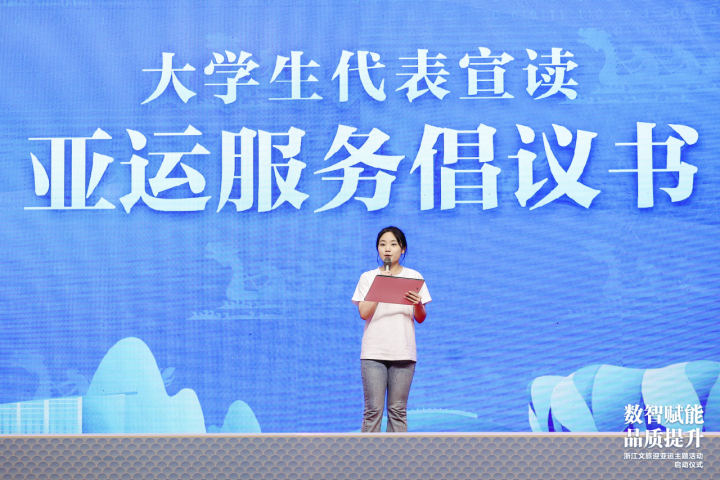 浙江省旅游协会、浙江省旅游景区协会、浙江省饭店业协会、浙江省民宿产业联合会、浙江省旅行社协会代表宣读了《浙江文旅亚运品质服务倡议书》