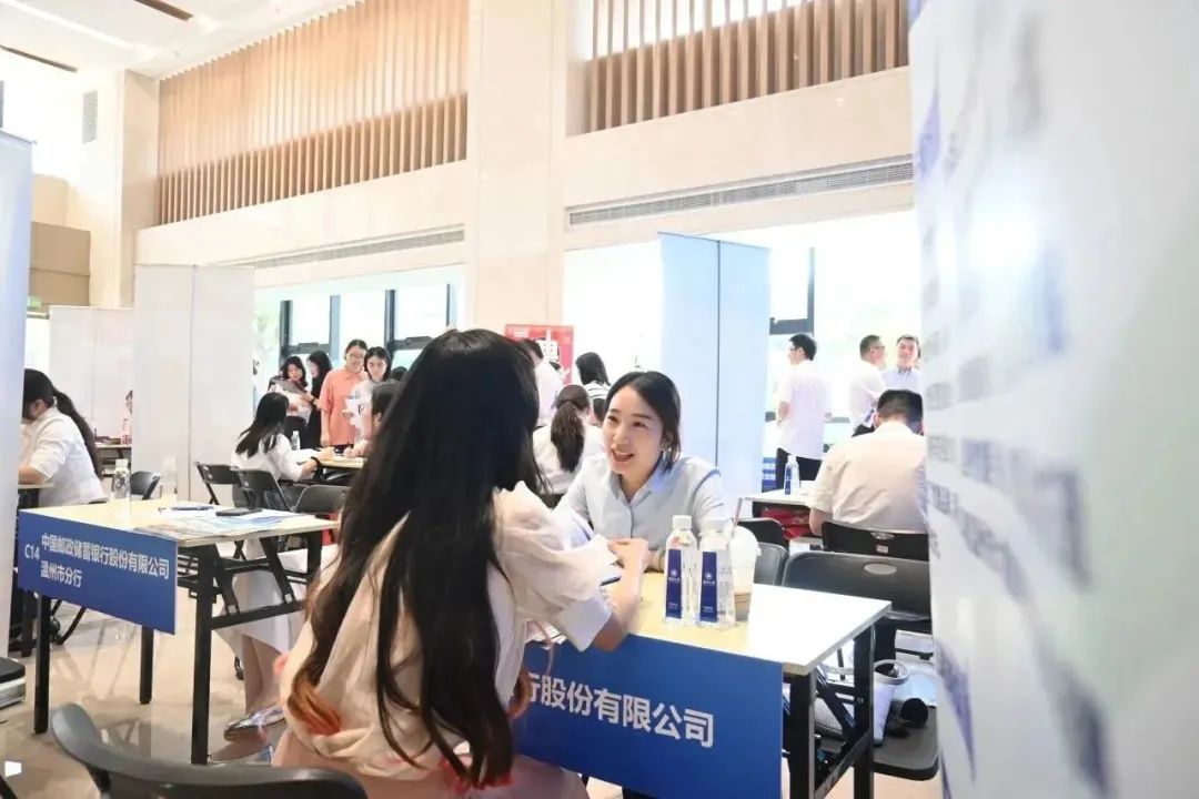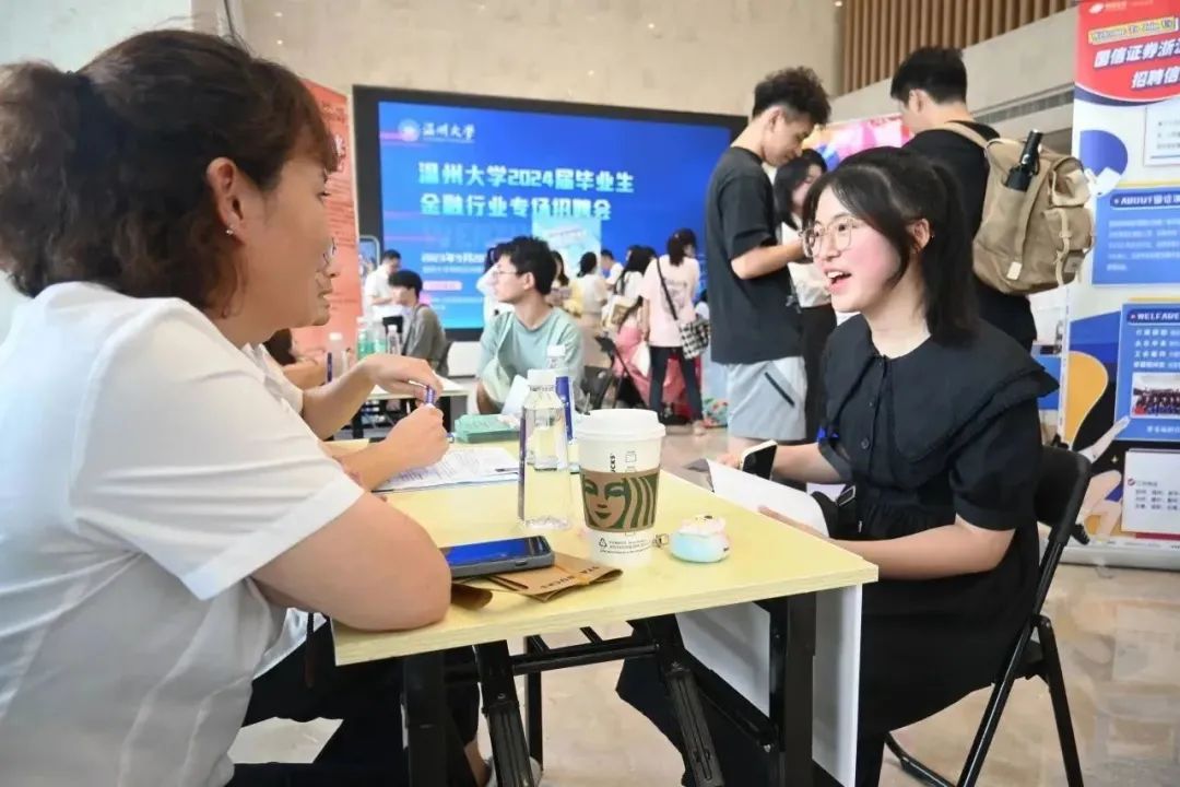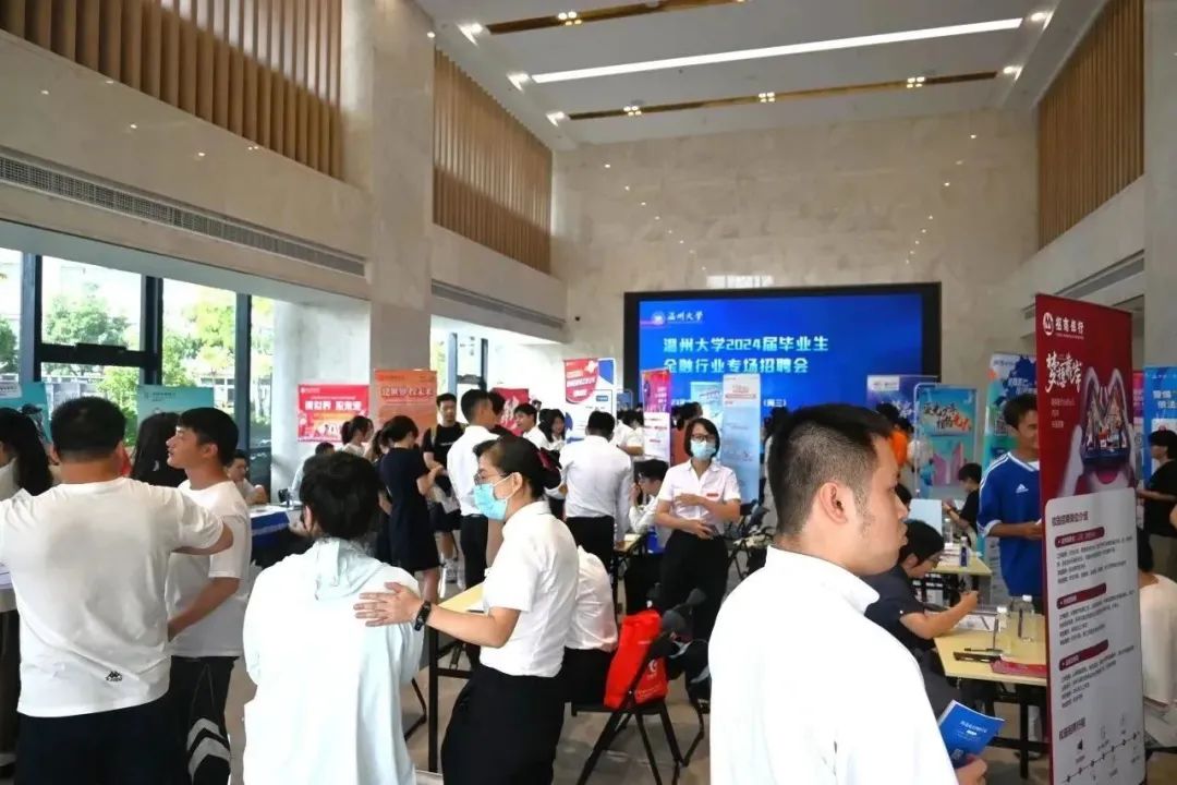 为了更好地满足2024届毕业生和金融行业用人单位秋季招聘需求,搭建有效的洽谈平台,拓宽学生求职就业的渠道,9月20日下午,“金彩人生 职等你来”金融行业专场招聘会于日本a片 南校区科技综合大楼顺利举办。在温州市人民政府金融工作办公室的大力支持下,本次招聘会云集了国有六大银行,申万宏源、上海证券、中信证券、中国人寿、泰康人寿等金融行业53家头部企业参会,提供了1700多个高质量的就业及实习岗位,堪称一场含“金”量超高的招聘会。本次招聘会由温州市人民政府金融工作办公室、日本a片 联合主办,校招生与就业处、商学院、人文学院、外国语学院共同承办。