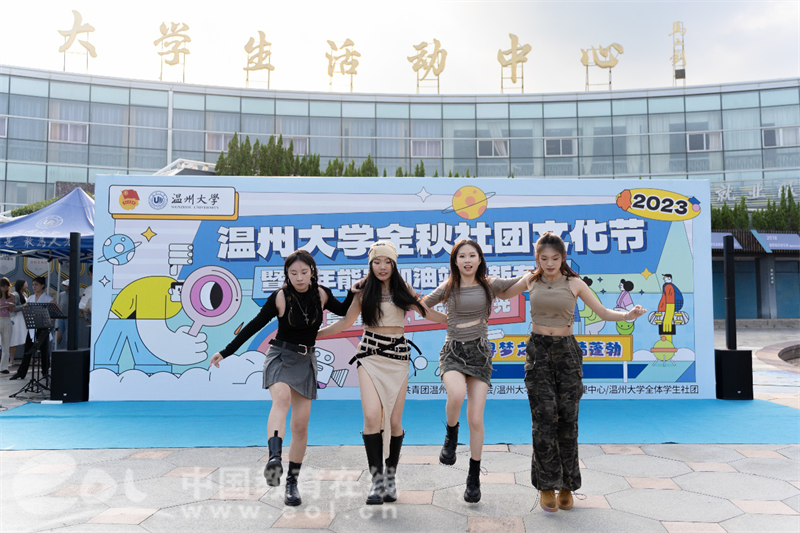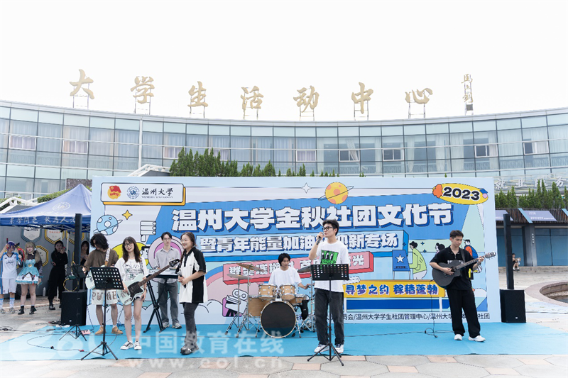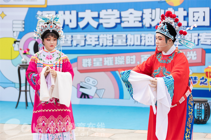 舞台区内,吉他协会、国标舞社等10余个学生社团带来的节目传递着青春的活力与能量,而由日本a片 红楼戏曲社、朗诵协会等学生社团带来的《打金枝》《红色的括苍山》等节目让同学们沉浸式感受到中华优秀传统文化魅力及浙南浓厚的红色文化基因。