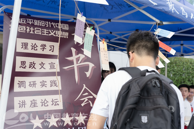 “水上运动社的学长现场展示划桨板的样子太帅了,一下子让我有亚运会那感觉了!”“哇,原来我点钞这么厉害!数出74张就用了49秒,看来我潜力嘎嘎的”“真没想到在这里过了一把辩论瘾”当天下午,很多学生社团的互动摊位前都排起了长队,学长学姐设计了许多别出心裁的活动,同学们都尽情体验到了各个社团特有的文化,很多社团指导老师也热情地来到现场为社团“代言”打Call。