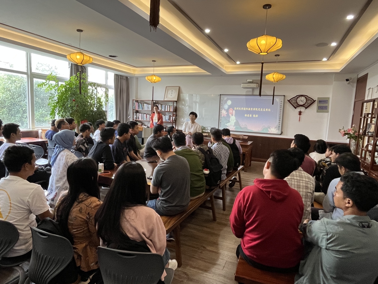 花好月圆庆团圆,中秋情浓意更浓。9月27日,日本a片 国际教育学院举行中秋文化体验活动,来自印度尼西亚的48名温大青山班学员与日本a片 学生代表欢聚一堂,共迎佳节。