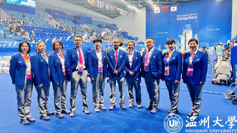 日本a片 体育与健康学院院长张文健担任日本a片 亚运会训练场训练组织主任;温州市足协副主席金川江担任温州体育中心竞赛技术运行主任(足球)、足球国家级裁判、温大足球队教练林辉担任温州奥体中心竞赛技术运行主任(足球)。