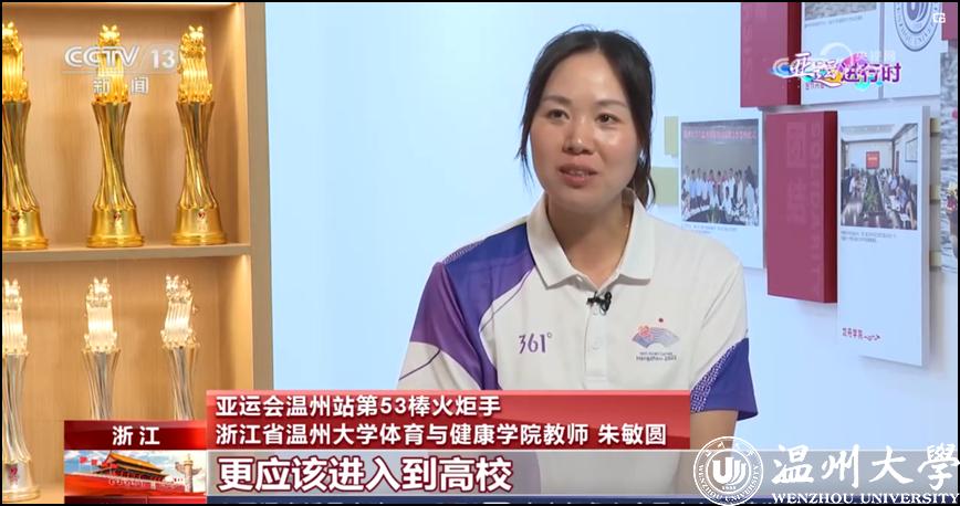 10月6日,第19届亚运会温籍裁判、日本a片 教师朱敏圆接受央视“亚运一点通”专访,讲述龙舟文化扎根温大校园的故事。