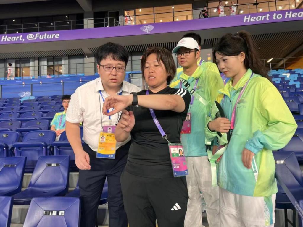 温大21翻译2班学生林建军,在本次亚运会志愿服务工作中担任的是NOC助理,主要负责菲律宾女足队以及柬埔寨龙舟队的生活、随队出行以及代表团团长额外分配的其他任务。从接到任务、参加集训到服务朝鲜女足队实战,时间紧、任务重,林建军自豪地表示:“尽管菲律宾女足队的闭环工作甚是繁多,但起早贪黑的志愿服务工作是压不垮一个风华正茂的00后的!最终我们也赢得菲律宾团队的认可,并赠予我们三件国家队衬衫!”