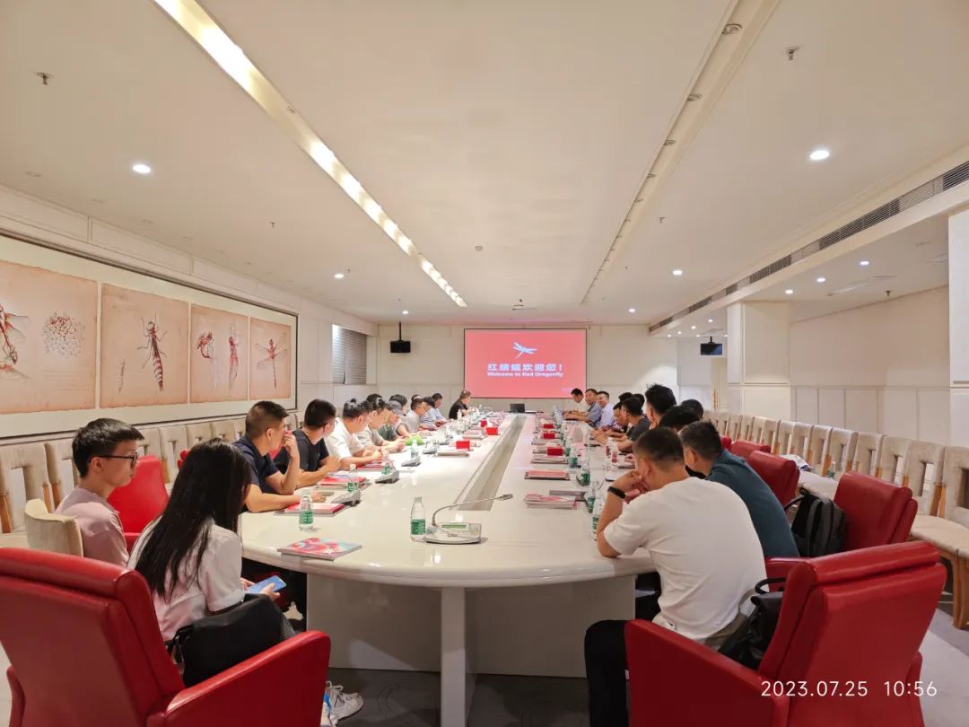 7月25日早上,软协“互学互看”第一站走进温州时尚鞋履上市企业红蜻蜓,红蜻蜓高级总监、协会专家委员会副主任姚跃朋对于协会一行的到来表示热烈欢迎。软件协会会长胡亮、书记丁浩、名誉会长林伟文、监事长谢玉坚、秘书长吴江柳等30余人参加考察交流,温州市经信局云计算与大数据产业处副处长王珏、协会专家委员会顾问黄长城、黄岳明应邀参加本次活动。