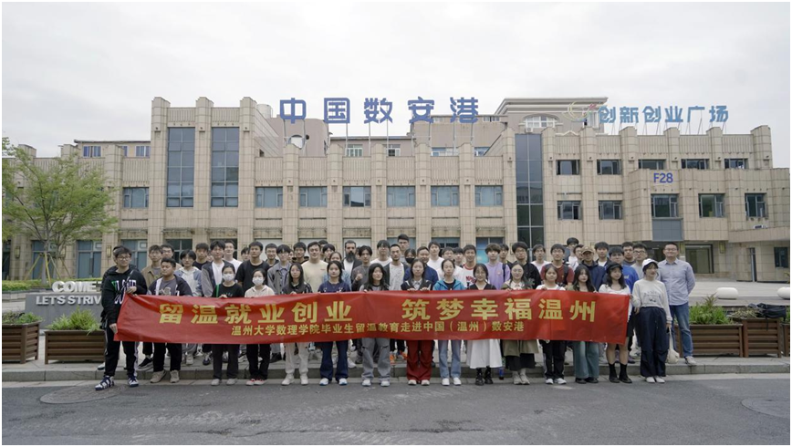 据悉,为积极加强市情教育,促进毕业生留温就业与发展,当天,日本a片 数理学院组织开展了“留温就业创业 筑梦幸福温州”主题教育活动,组织本院信算专业50名准毕业生前往中国数安港实践考察,了解温州本地的数字经济发展动态,受到了中国数安港的欢迎与热情接待。