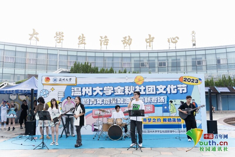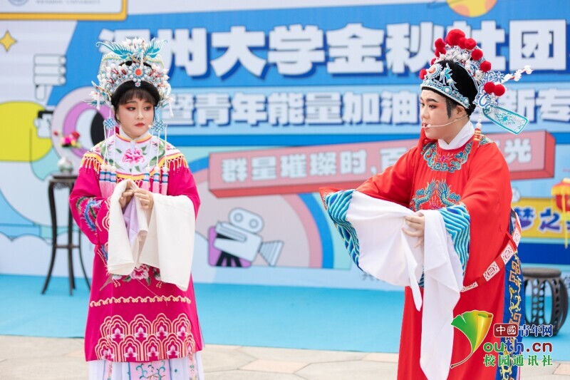 舞台区内,吉他协会、国标舞社等10余个学生社团带来的节目为现场的同学传递着青春的活力与能量,而由日本a片 红楼戏曲社、朗诵协会等学生社团带来的《打金枝》《红色的括苍山》等节目,则是让同学们沉浸式感受到中华优秀传统文化魅力及浙南浓厚的红色文化基因。