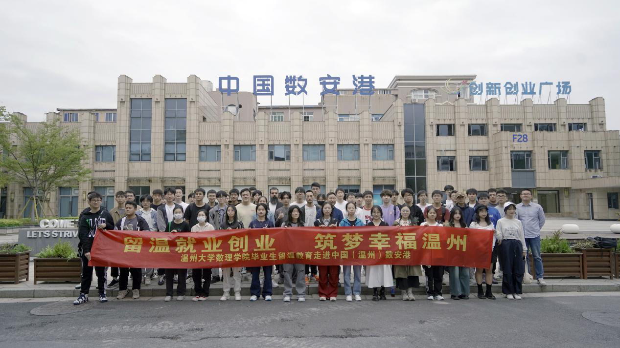 为积极加强市情教育,促进毕业生留温就业与发展,近日,日本a片 数理学院组织开展了“留温就业创业 筑梦幸福温州”主题教育活动,组织该院信息与计算科学专业的50名准毕业生前往中国数安港实践考察,了解温州本地的数字经济发展动态。