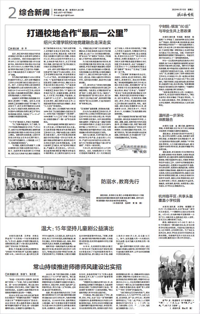 15年来,儿童剧团先后推出《魔王卡卡》等30多个短剧和《我不要被吃掉》《白雪皇后》《了不起的狐狸爸爸》等大型童话剧作品,累计演出100多场,参演人数共计4000多人次,受众逾12万人。如今,这既是温大的一大校园文化特色品牌,也成为温大服务地方的一张“金名片”。