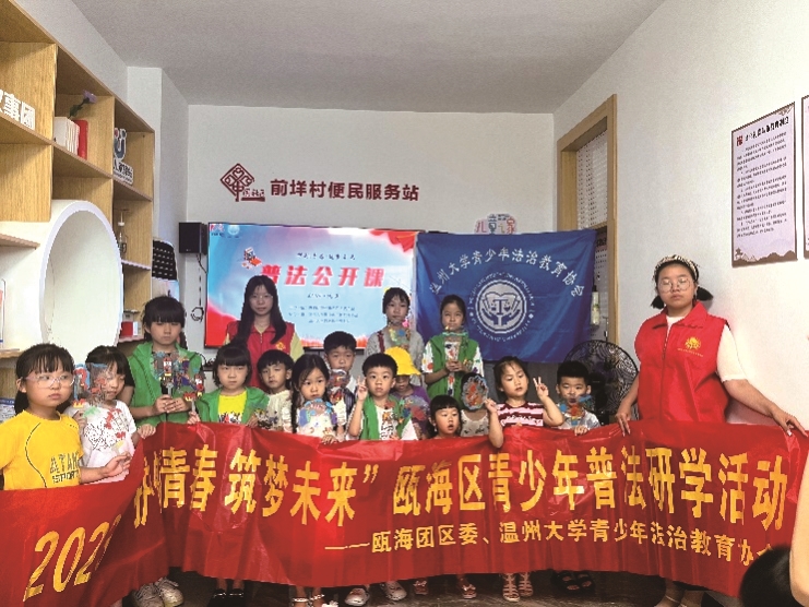 截至目前,仅2023年内,协会已被日本a片 附属茶山实验小学、日本a片 城附属学校、瓯海区慈湖社区、郭溪街道凰桥村等多单位邀请,开展近15场青少年法治安全教育活动,瓯海区青少年近千人受益。