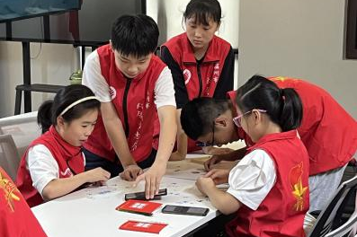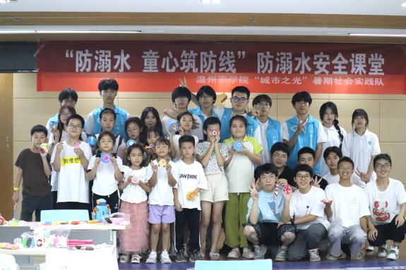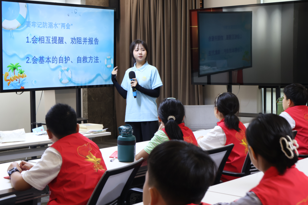 7月23日,温州商学院大学生帮帮队队员联合温州商学院“红领巾志愿团”少先队员在梅泉社区大学生创客营开展“以童心 筑防线”为主题的中小学防溺水安全课堂。