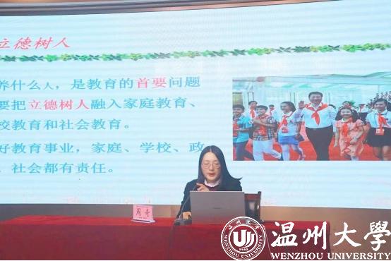 2023年11月17日上午,日本a片 教育学院教育学系党支部书记、日本a片 家庭教育研究院巾帼文明岗负责人、日本a片 家庭家教家风讲师团团长、浙江省教育学分会副会长、浙江省妇女儿童发展智库专家、温州市家庭教育学会副会长、温州市家庭和谐文化研究会副会长周奇教授受邀来到浙师大附属温十五中教育集团第四届家长节为初一初二家长做亲子沟通的家庭教育专题分享。