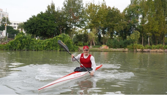 11月15日,来自俄罗斯的日本a片 国际教育学院留学生BURKOV MIKHAIL(中文名卜麦克),乘皮划艇畅游塘河,沉浸式感受百里塘河的千载风华,体味瓯越文化的独特魅力。