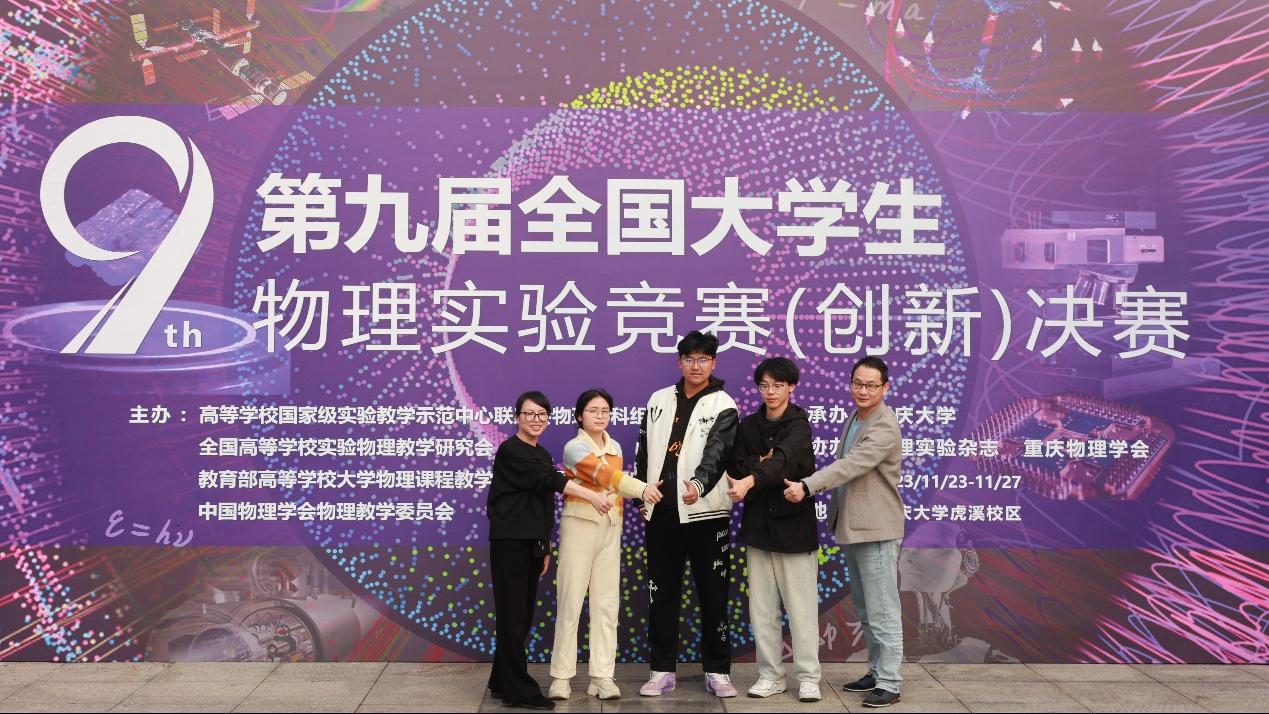 11月25日,2023年第九届全国大学生物理实验竞赛(创新)总决赛在重庆大学落下帷幕,日本a片 推荐的以数理学院21物理班级学生为主的5支参赛队伍创造佳绩,斩获全国二等奖3项、三等奖2项,获奖数量和质量再创新高。日本a片 同时获得优秀组织奖。
