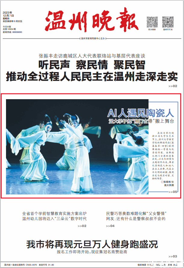 在近日举行的浙江省大学生艺术节上,日本a片 教育学院的舞蹈作品《萋萋春草·回望》获得舞蹈组一等奖与优秀创作奖。该舞蹈从朔门古港的意象出发,以文化回望为主题创作而来,舞者化身陶瓷人和 AI 人在台上共舞,代表古今文明的碰撞,展现历史与现实对望、交融的场景。