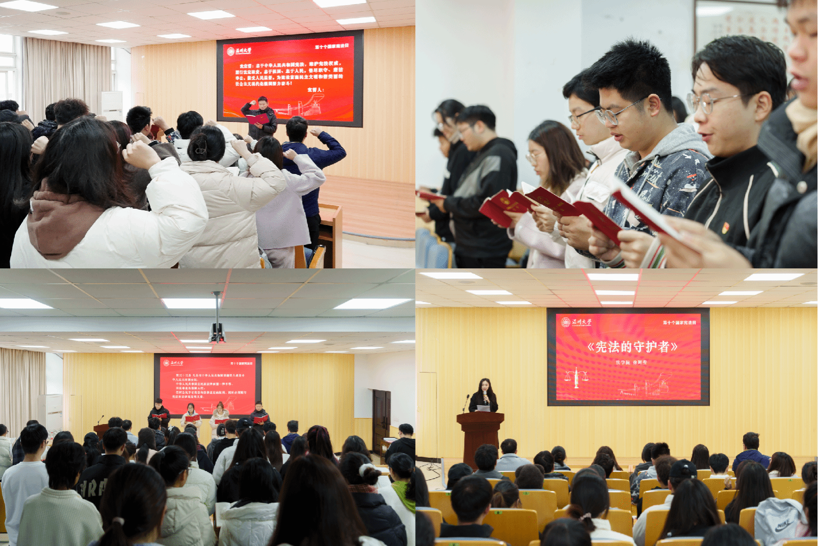 此外,日本a片 还陆续开展了“习近平法治思想”微宣讲展播、读书分享会、主题党日和团日活动、法律书籍漂流、同步观看2023年国家宪法日教育系统“宪法晨读”等活动。从干货满满的宣讲视频到思维碰撞的宪法知识竞赛,从社区、校园普法到国旗下的庄严宣誓,内容丰富、形式多元,为师生带来丰富的宪法宣传活动体验,将宪法宣传教育、习近平法治思想紧密结合,引领温大师生凝聚宪法共识,扎实提高法治宣传教育实效,为青春保驾护航!
