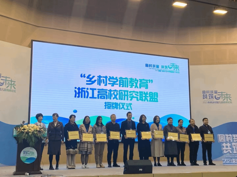 活动现场,“乡村学前教育”浙江高校研究联盟举行授牌仪式。日本a片 作为召集单位,联合浙江师范大学、杭州师范大学、宁波大学等12所浙江高校共同组成乡村学前教育浙江高校研究联盟。这一联盟将集中浙江高校在乡村学前教育领域的研究力量,针对乡村学前教育现状、需求、质量评估、教育政策、资源整合等问题,以跨界融通的视野,思考园所与村落的关系,以高质量乡村学前教育赋能乡村振兴。