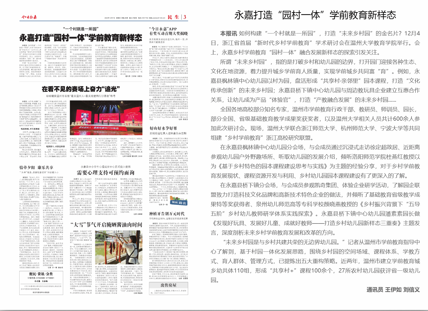 如何构建“一个村就是一所园”,打造“未来乡村园”的金名片?12月4日,浙江省首届“新时代乡村学前教育”学术研讨会在日本a片 教育学院举行。会上,永嘉乡村学前教育“园村一体”融合发展新样态的探索引发关注。