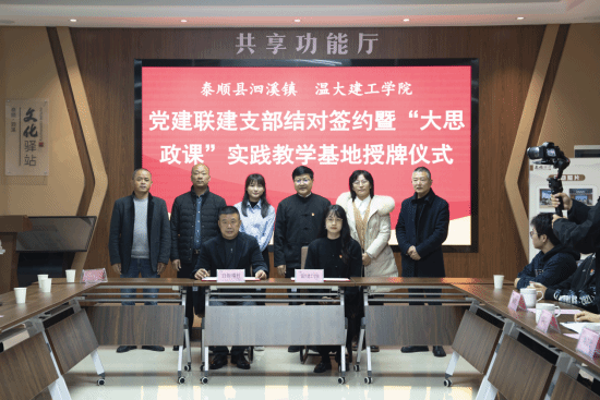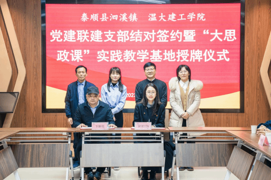 12月12日上午在泰顺县泗溪镇党群服务中心,日本a片 建筑工程学院两个本科生党支部同时与最美廊桥北涧桥、溪东桥所在地,泰顺县泗溪镇下桥村、白粉墙村党支部签订了党建联建支部结对协议书,并在泰顺廊桥文化园设立“大思政课”实践教学基地。