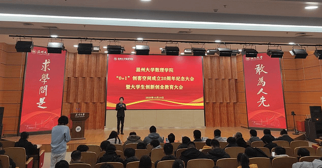 据温大数理学院相关负责人介绍,温州是创业的热土,温商是创业的榜样,早在2003年,学院便成立了“0+1”工作室,传承温商精神,帮助大学生在创业道路上实现从0到1的突破。工作室成立以来,成功孵化了杭州新麦科技有限公司、诸暨创佳网络科技有限公司等众多企业,也收获了互联网+、挑战杯国赛的众多成绩。接下来,学院将继续发挥创业学子榜样作用,引领更多大学生投入创新创业实践。