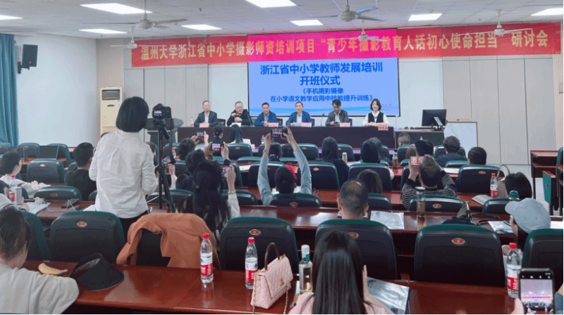 12月8日,“以摄影为矩 燃教育之火”胡铸鑫摄影艺术创作研讨会暨日本a片 青少年摄影美育研究中心(筹)申办座谈会在日本a片 教育学院召开。来自全国青少年摄影教育指导委、日本a片 、温州商学院专家教授,温州市瓯海区中小学(幼儿园)校长代表和来自全省各地的浙江省中小学摄影教师专业发展培训班的教师代表40余人参加研讨会。